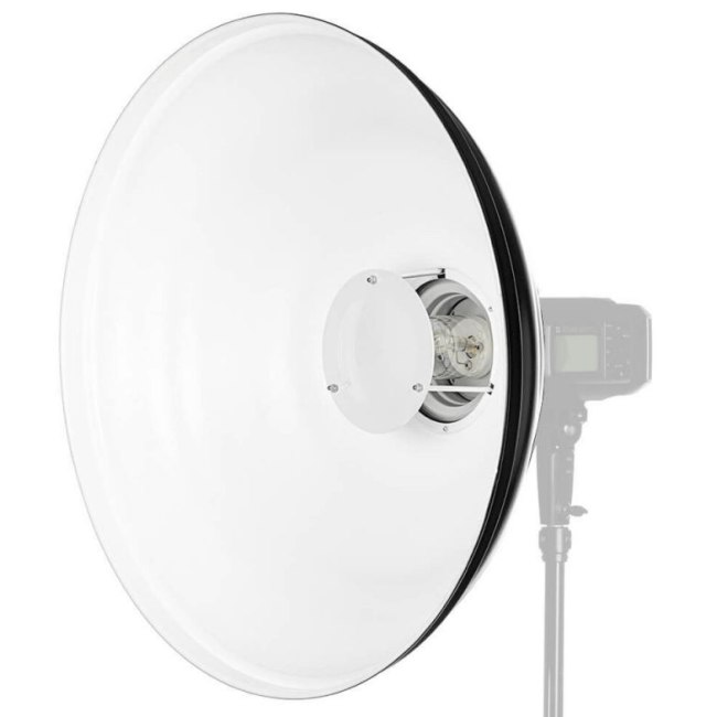 Beauty Dish crea un patrón de iluminación único sobre el tema que ofrece una luz de captura redonda en el ojo del sujeto, A menudo se utiliza en la moda y en las industrias de belleza para crear excelentes tonos de piel suaves y uniformes. Es un dispositivo utilizado para crear luz suave C funciona usando un reflector parabólico para distribuir la luz hacia un punto focal. La luz creada está entre la de un flash directo y una softbox, dando así la imagen de un aspecto envuelto y contrastado, que añade un efecto muy espectacular. Este plato de belleza tiene 55 cm de diámetro y viene con rejilla de panal extraíble y difusor blanco frontal. El color interno del reflector es plateado, y también tiene un ajuste de tipo S. el plato de belleza crea un patrón de iluminación único sobre el tema que ofrece una luz de captura redonda en el ojo del sujeto, A menudo se utiliza en la moda y en las industrias de belleza para crear excelentes tonos de piel suaves y uniformes.