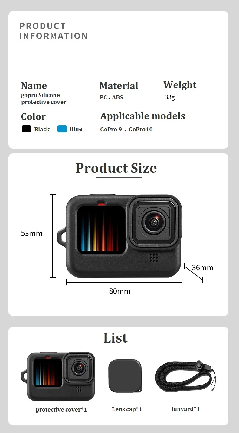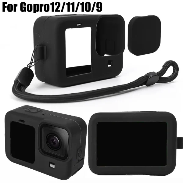 Funda de silicona para Gopro Hero 9 Black, Hero 10 Black, Hero 11 Black y Hero 12 Black, fabricado de goma de silicona de alta calidad, duradera y suave, absorbe el calor, lo que prolonga la vida útil de la batería en condiciones frías y evita que la cámara se deslice.
